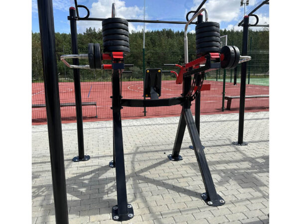 - Gewichten: standaard max. 70 kg (14 stuks van elk 5 kg. Kan indien u wenst vermeerderd of verminderd worden).